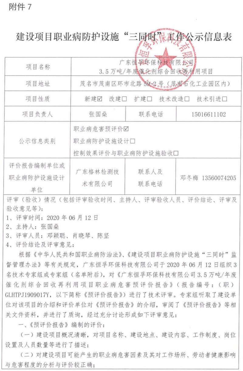 建设项目职业病防护设施“三同时”工作公示信息表(职业病危害预评价)
