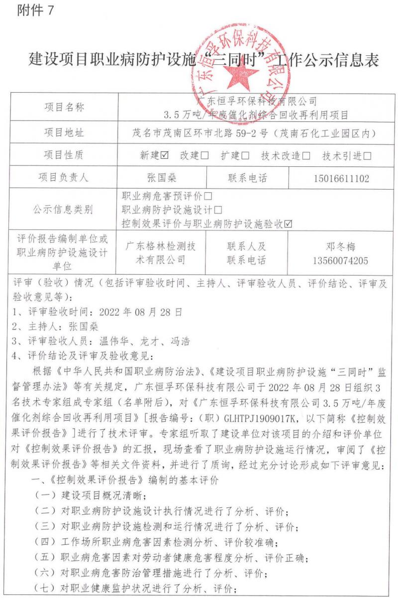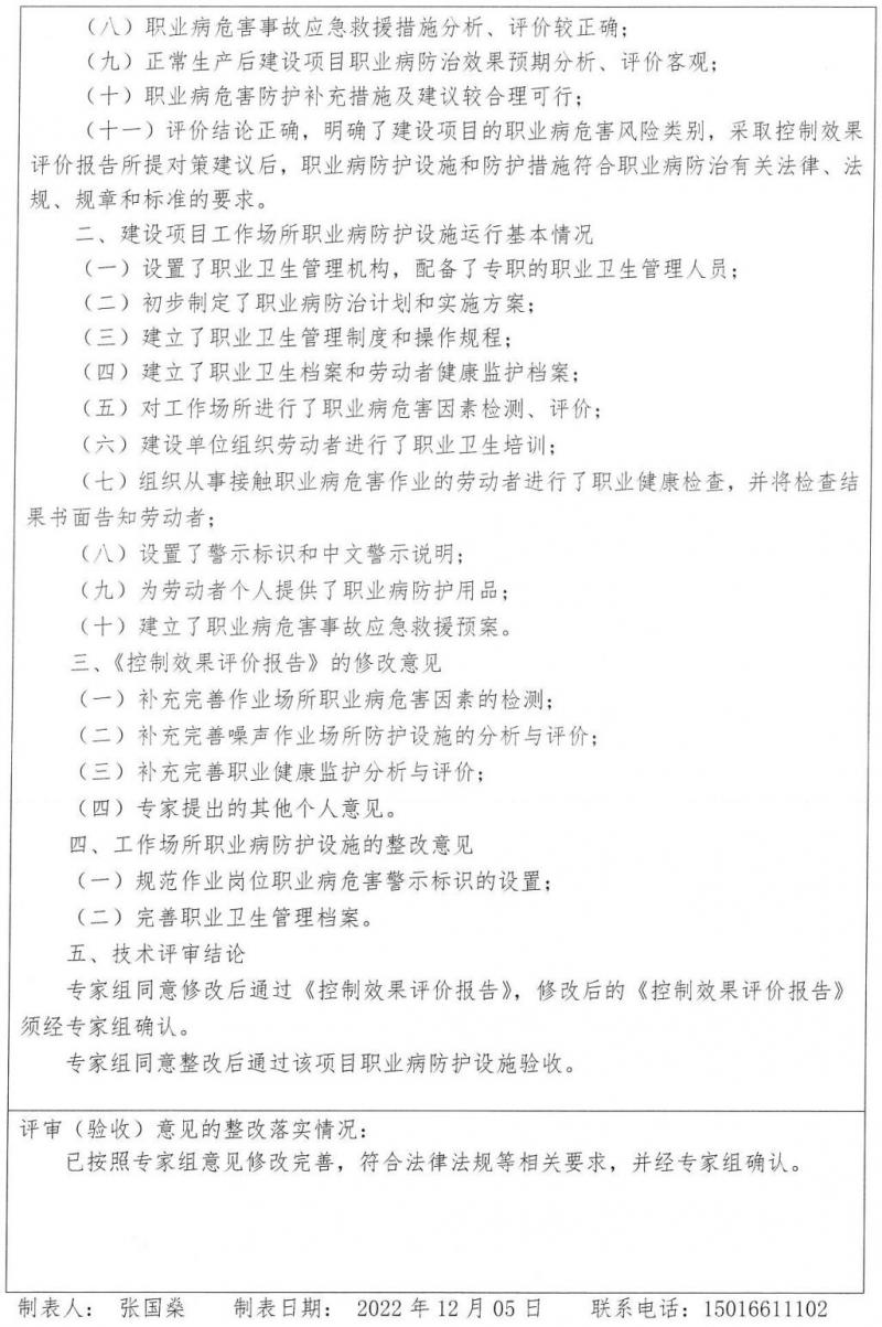 建设项目职业病防护设施“三同时”工作公示信息表(控制效果评价与职业病防护设施验收)